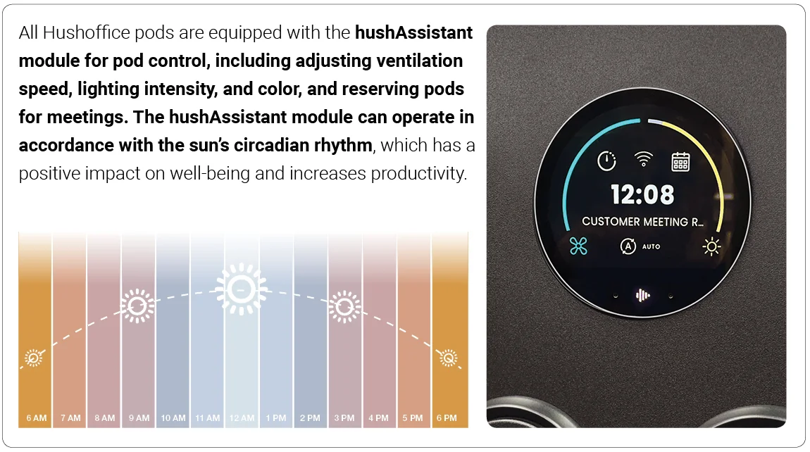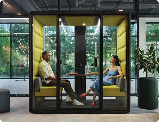 Enjoy focused work and collaboration with Hushoffice acoustic pods