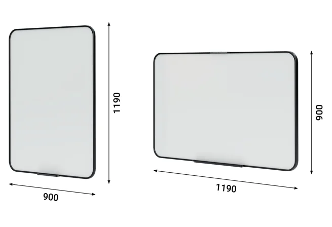 Dry-erase magnetic board with accessory organizer, available in external vertical and horizontal options as well as internal horizontal version. Finished with an elegant frame in three selectable colours. Frame is available in three colours to choose from, allowing you to match it to the selected external acoustic pod finish or to the meeting table countertop.