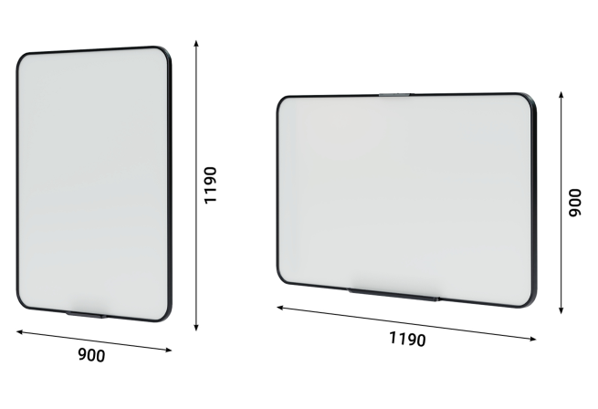 Dry-erase magnetic board with accessory organizer, available in external vertical and horizontal options as well as internal horizontal version. Finished with an elegant frame in three selectable colours. Frame is available in three colours to choose from, allowing you to match it to the selected external acoustic pod finish or to the meeting table countertop.