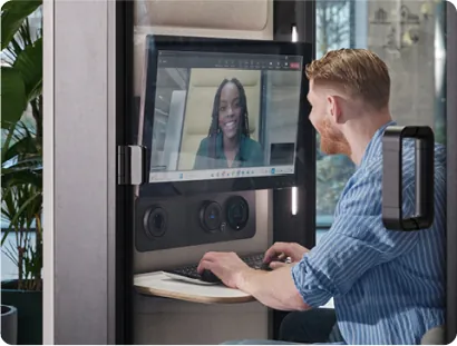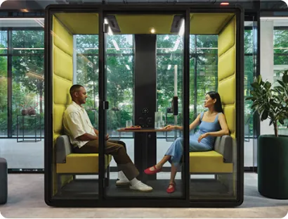 Showcasing hushFree.XM – our most compact meeting pod, designed to elevate one-on-one conversations and spontaneous collaboration